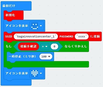 できたら、Micro:Bitに書き込み、Wi-Fiに接続してください。
